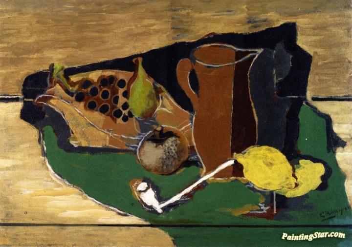 Fruit, Pitcher and Pipe, Art Painting by Georges Braque