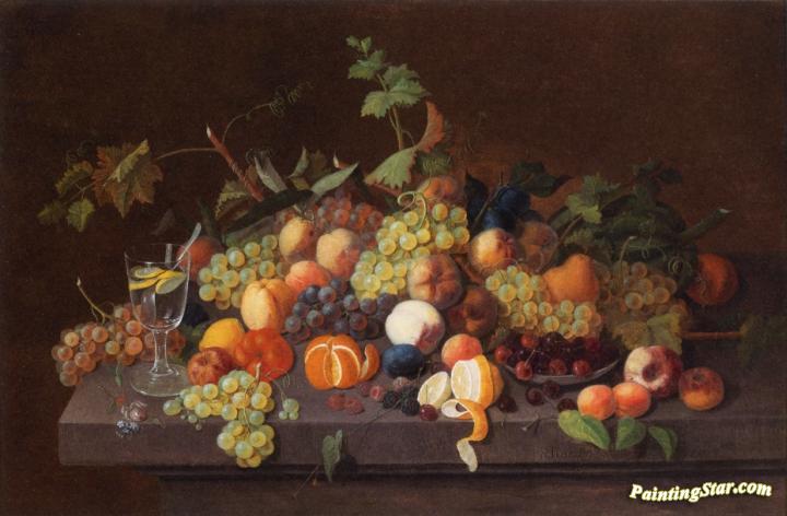 Fruit Still Life with Glass of Lemonade, Art Painting by Severin Roesen