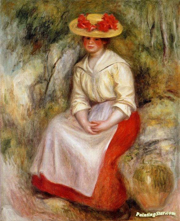 Gabrielle in a Straw Hat, Art Painting by Pierre Auguste Renoir