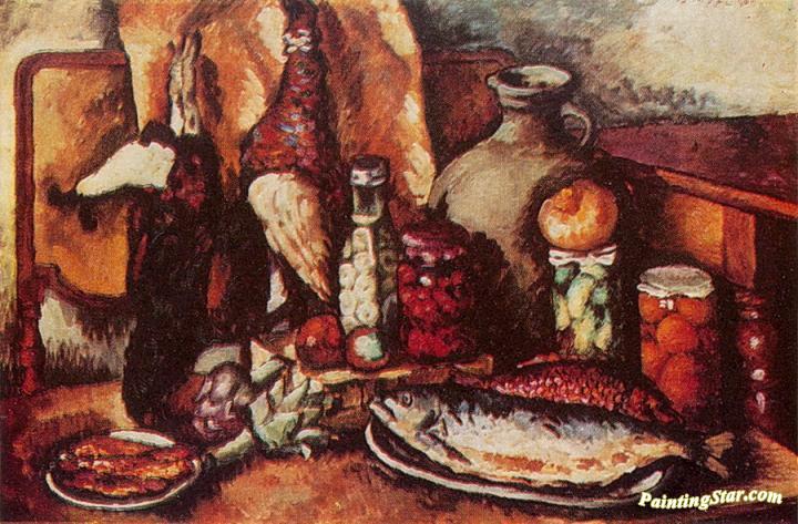 Game, fish and pickles, Art Painting by Ilya Mashkov