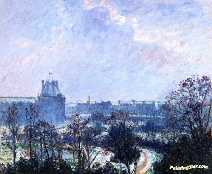Garden of the Louvre: Snow Effect, Art Painting by Camille Pissarro