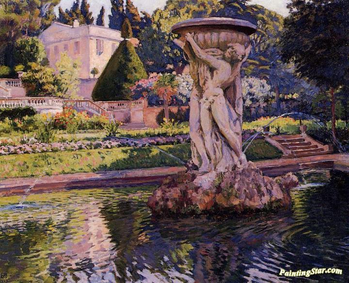 Garden with Villa and Fountain, Art Painting by Theo van Rysselberghe