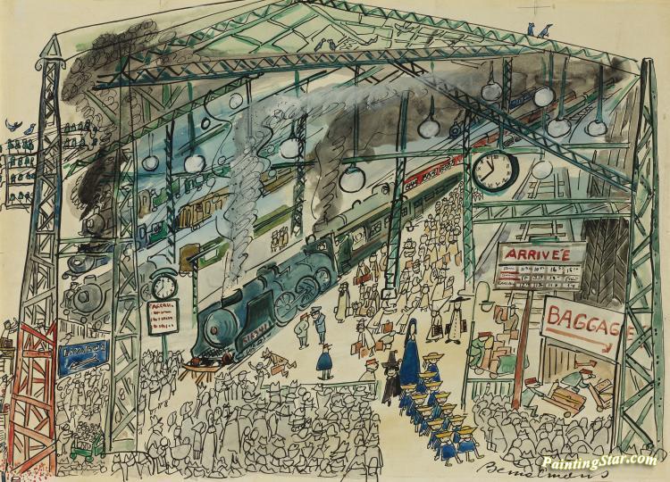 Gare Saint Lazare In Paris, Art Painting by Ludwig Bemelmans