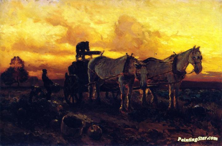Gathering Pumpkins at Sunset, Art Painting by Mathias J. Alten
