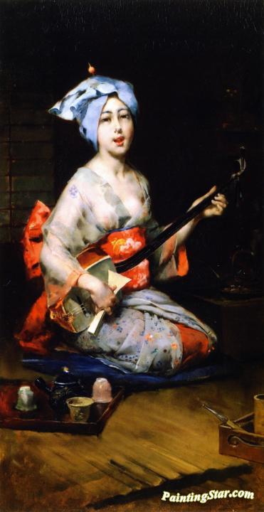 Geisha Playing A Samisen, Art Painting by Harry Humphrey Moore