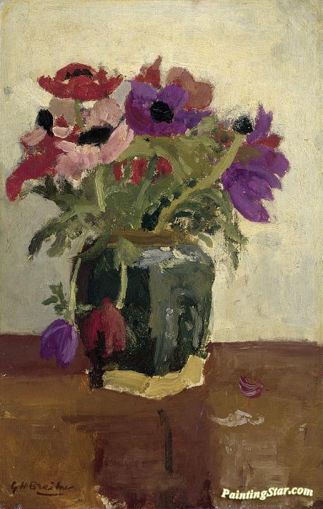 Gemberpot met anemonen, Art Painting by George Heidrik Breitner