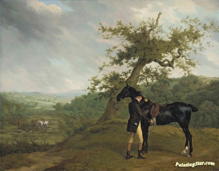 George Irving with his black hunter beneath a blasted oak, Art Painting by Jacques-Laurent Agasse