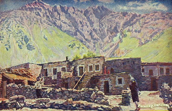 Georgia. Mount Shat and Village, Art Painting by Ilya Mashkov