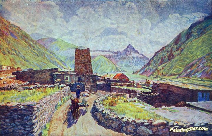 Georgia. View of Mount Kabardzhino and Village, Art Painting by Ilya Mashkov