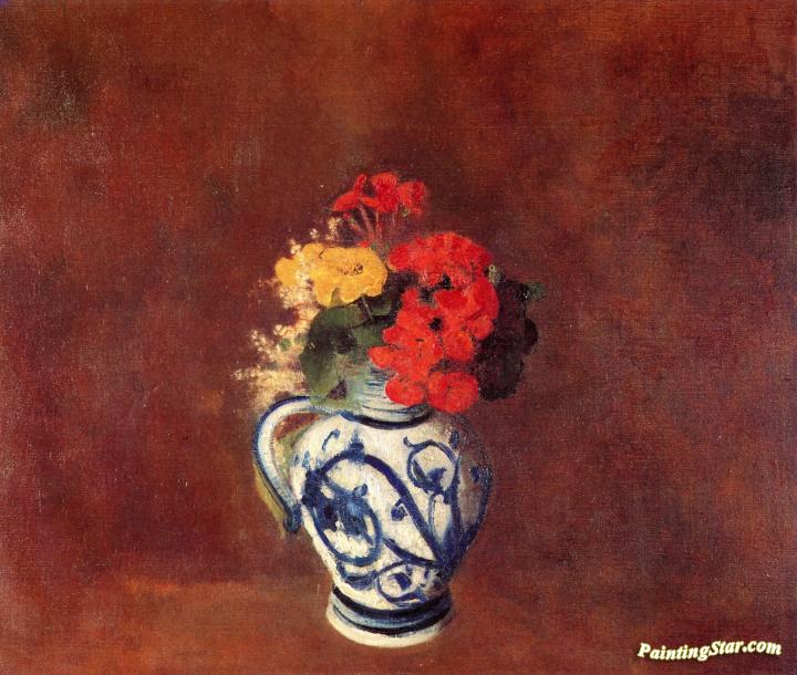 Geraniums and Flowers in a Stoneware Vase, Art Painting by Odilon Redon