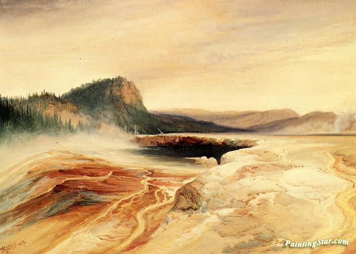 Giant Blue Spring, Yellowstone, Art Painting by Thomas Moran
