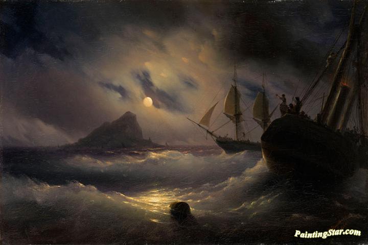 Gibraltar By Night, Art Painting by Ivan Constantinovich Aivazovsky