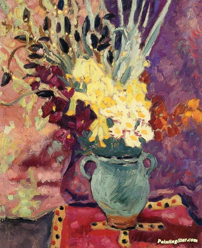 Gillyflowers And Narcissus In A Green Pitcher, Art Painting by Louis Valtat