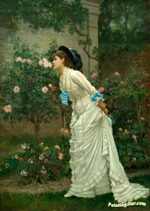 Girl And Roses, Art Painting by Auguste Toulmouche