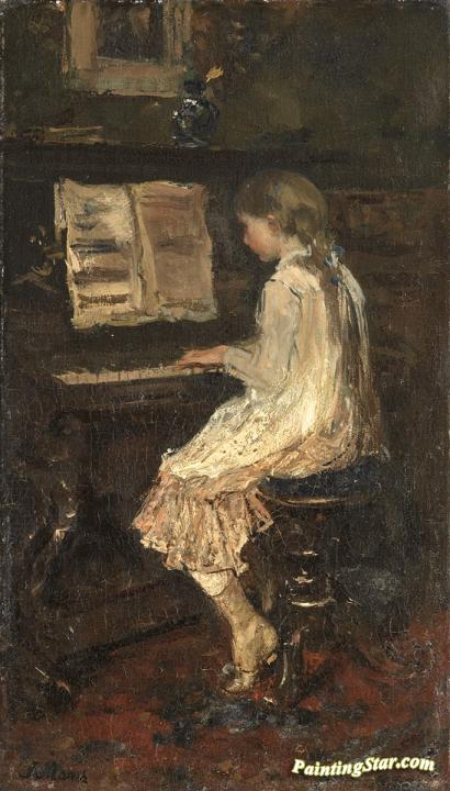 Girl at a piano, Art Painting by Jacob Maris