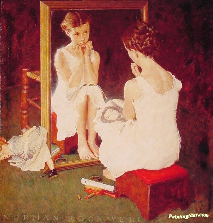 Girl at Mirror, Art Painting by Norman Rockwell