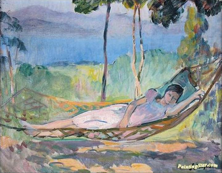 Girl in a hammock in Cannes, Art Painting by Henri Lebasque