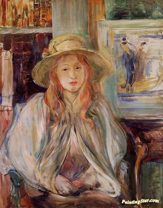 Girl in a Straw Hat, Art Painting by Berthe Morisot