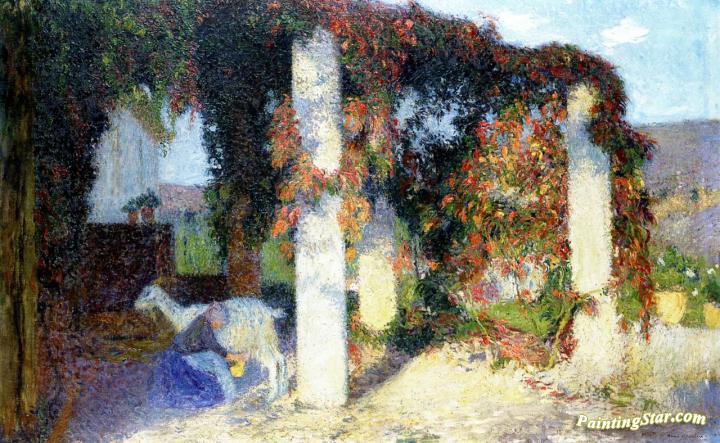 Girl Milking a Goat under the Arbor at Marquayrol, Art Painting by Henri Martin