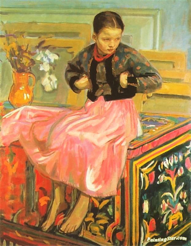 Girl On A Krakow Chest, Art Painting by Wojciech Weiss