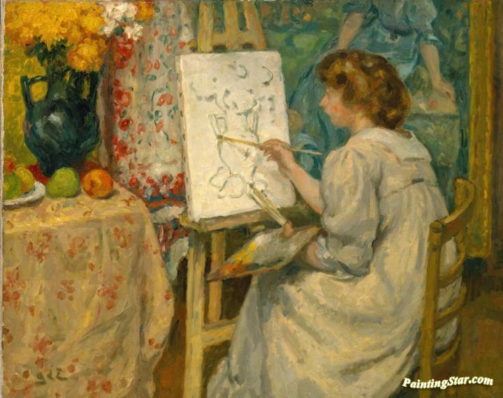 Girl Painting at an Easel, Art Painting by Georges D'espagnat