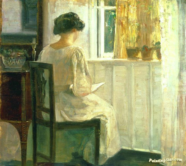 Girl Reading in a Sunlit Room, Art Painting by Carl Vilhelm Holsoe