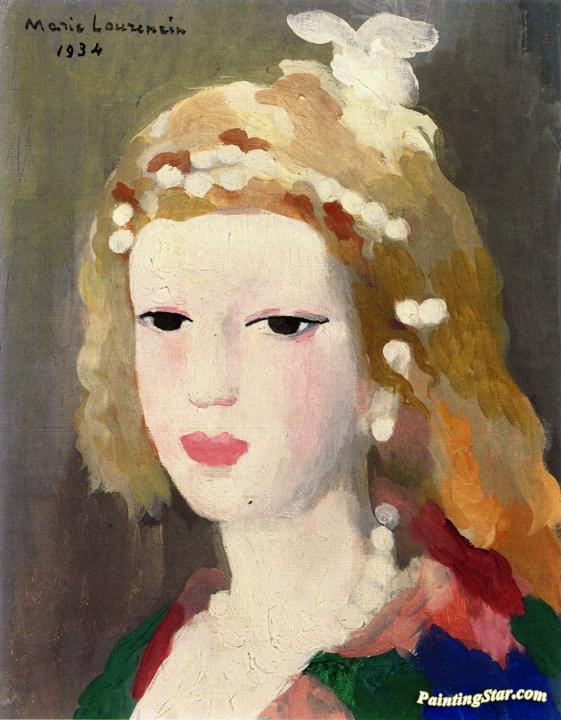 Girl's Head with Pearls, Art Painting by Marie Laurencin