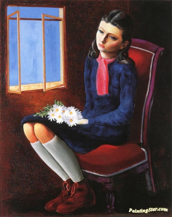Girl Seated with Daisies, Art Painting by Moise Kisling