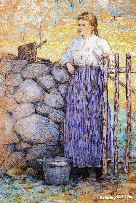 Girl Standing By A Gate, Art Painting by Julian Alden Weir