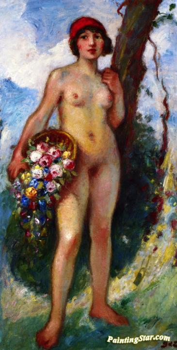Girl with a Basked of Roses, Art Painting by Georges D'espagnat