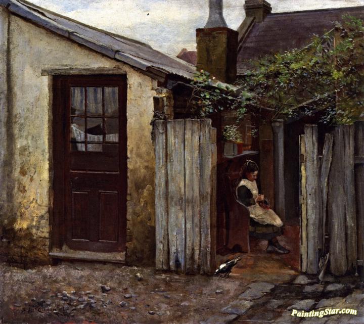 Girl with a Bird at the King Street Bakery, Art Painting by Frederick McCubbin