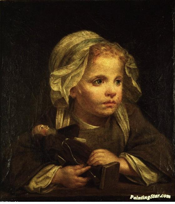 Girl with a capuchin, Art Painting by Jean-Baptiste Greuze