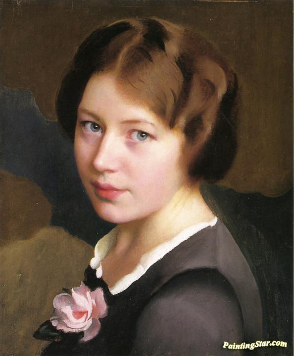 Girl With A Pink Rose, Art Painting by William Mcgregor Paxton