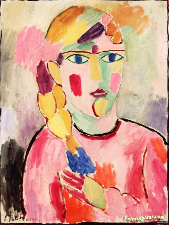 Girl with Blue Eyes and a Ponytail, Art Painting by Alexej Jawlensky