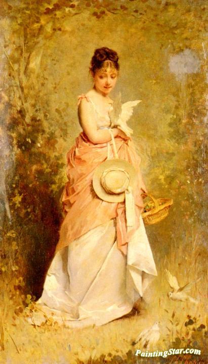 Girl with Doves, Art Painting by Charles Chaplin