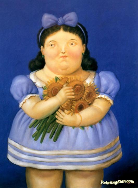 Girl with Flowers, Art Painting by Fernando Botero