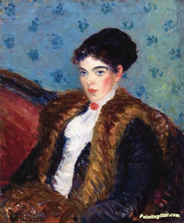 Girl with Fox Furs, Art Painting by William James Glackens