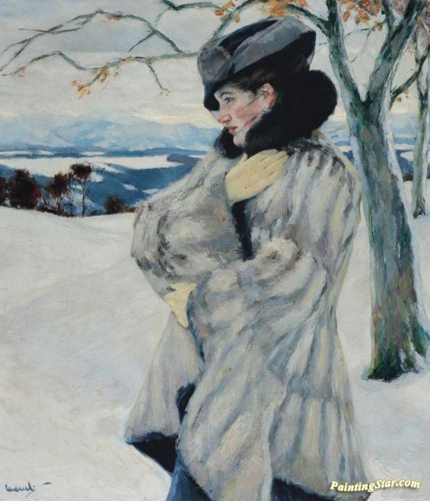 Girl with Fur Coat, Art Painting by Edward Cucuel
