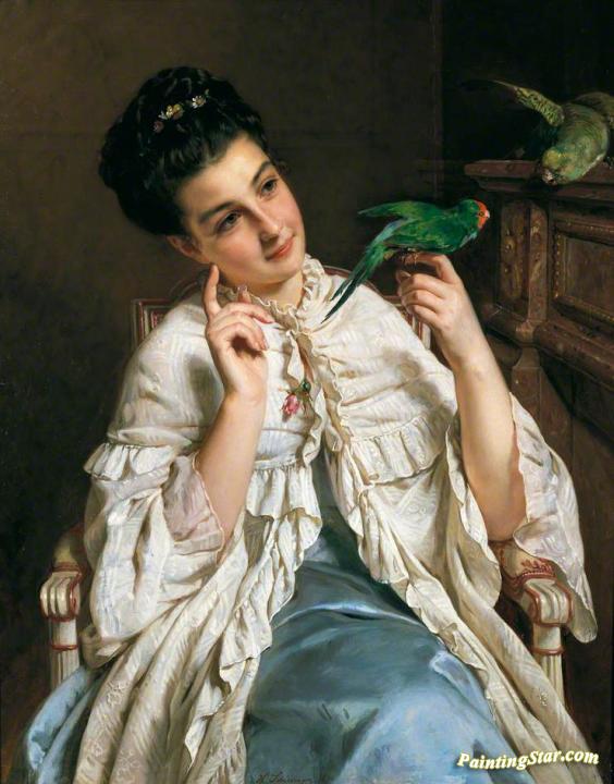 Girl with Lovebirds, Art Painting by Henri-guillaume Schlesinger
