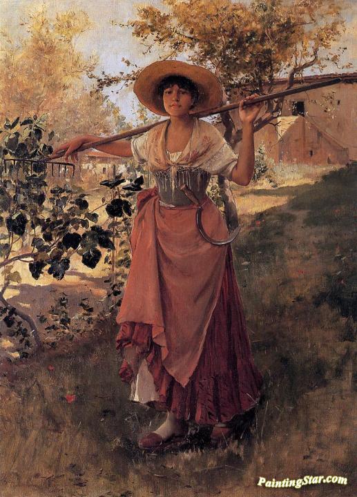 Girl with Rake, Art Painting by Frank Duveneck