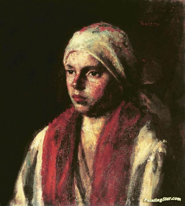 Girl with Red Kerchief, Art Painting by Jozsef Koszta