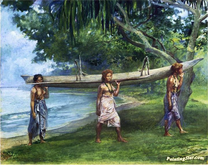 Girls Carrying a Canoe, Vaiala in Samoa. 1891. Portraits of Otaota, Daughter of the Preacher and Our Next Neighbor Saikumu. The , Art Painting by John La Farge