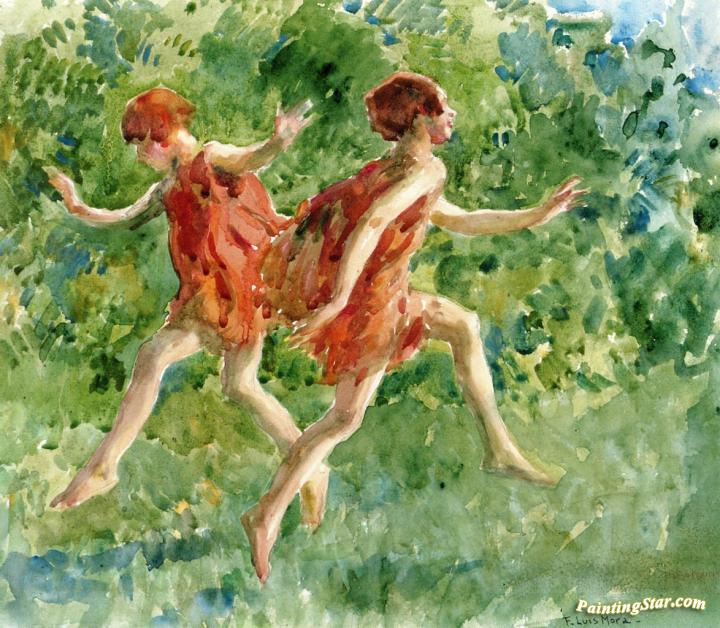 Girls Dancing In A Landscape, Art Painting by Francis Luis Mora