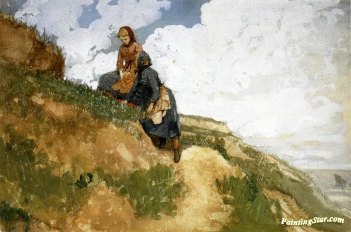 Girls On A Cliff, Art Painting by Winslow Homer