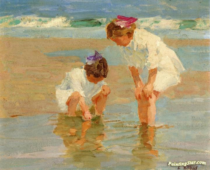 Girls Playing In Surf, Art Painting by Edward Potthast