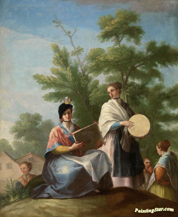 Girls playing the tambourine, Art Painting by Ramon Bayeu y Subias