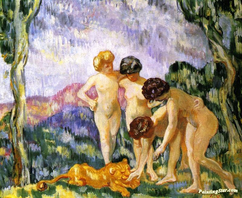 Girls Playing With A Lion Cub, Art Painting by Louis Valtat