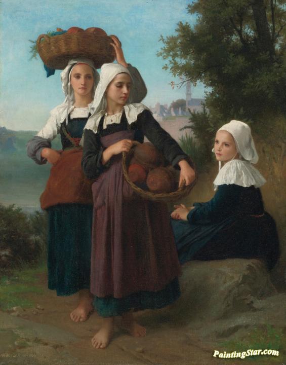 Girls Returning From The Market, Art Painting by William Adolphe Bouguereau