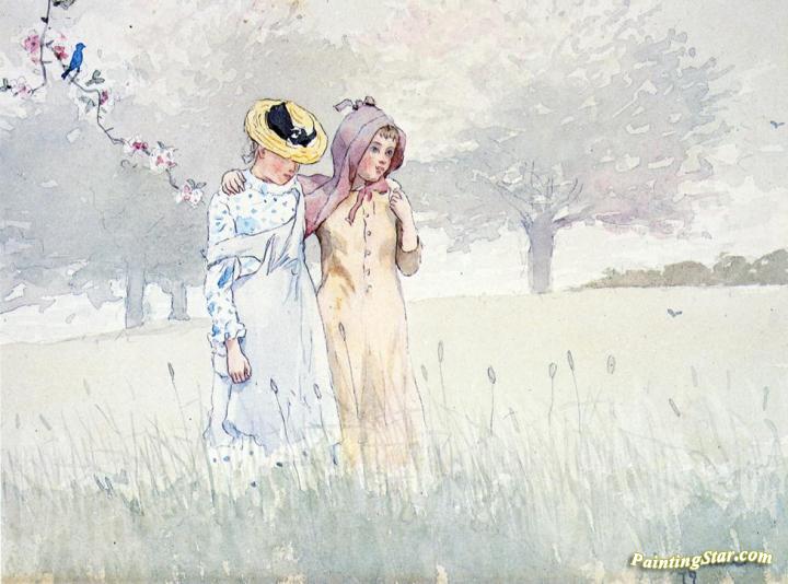 Girls Strolling in an Orchard, Art Painting by Winslow Homer