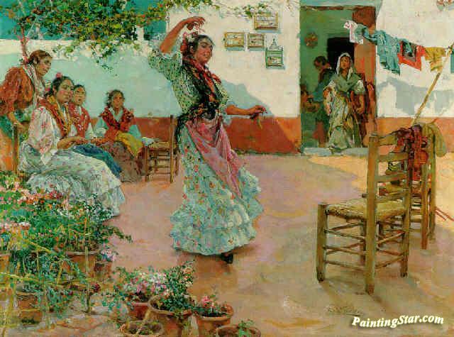 Gitanas En El Patio, Art Painting by Manuel Ruiz Guerrero